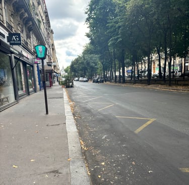 I started heading back home and was back on a block that I had been on before, right next to the Square of Batignolles (not pictured). It’s a tree lined sidewalk adjacent to the park with a big sidewalk full of people. Louis the dog is doing just great, not starting drama with any of the off leash dogs that pass.